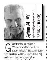 Pazartesi borsa yorumlarında duymadım bir mayıs’ın borsaya etkisini. Osama’dan ve Obama’dan pirelenen borsalar, emekçinin bayramını iplememişler. Olsun, emekçiler de borsayı iplemiyor zaten.