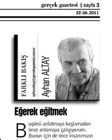 Bunları neden yazıyorum. O beğenilmeyen, tu kaka ilan edilen öğretmenler arasında yukarıdaki düşünceyi seslendirebilecek bir tek öğretmen bile olamazdı. Elbette aralarında az da olsa öğretmenliği yalnızca geçim kaynağı olarak görenler olmuş olabilir. Fakat bunu dile getirebilme ortamları olamazdı. Bu düşüncesini açıklamaya utanırlar, çekinirlerdi.