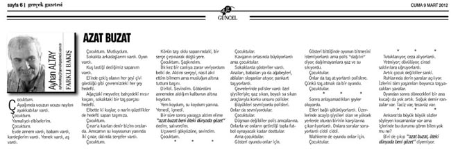 Sokaklarda gösteriler vardı. Anaları, babaları ya da ağabeyleri, ablaları sloganlar atıyor, pankart taşıyorlardı.