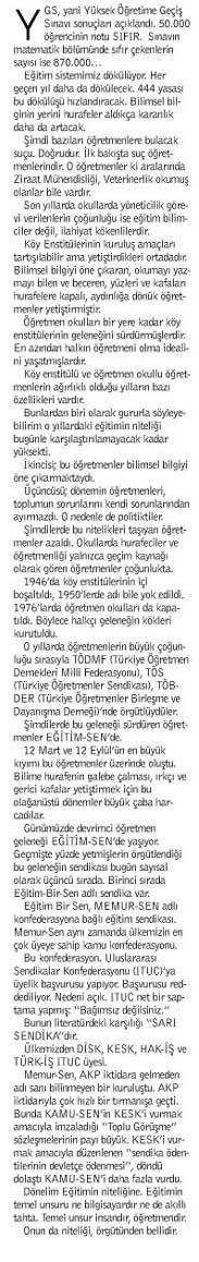 12 Mart ve 12 Eylül’ün en büyük kıyımı bu öğretmenler üzerinde oluştu. Bilime hurafenin galebe çalması, ırkçı ve gerici kafalar yetiştirmek için bu olağanüstü dönemler büyük çaba harcadılar.