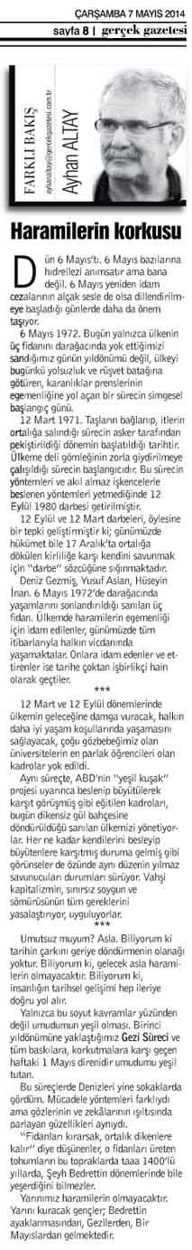 Yarınımız haramilerin olmayacaktır. Yarını kuracak gençler; Bedrettin ayaklanmasından, Gezilerden, Bir Mayıslardan gelmektedir.