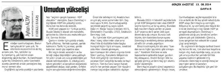 Geçtiğimiz aylarda yazdığım yazılarda hep “seçi min gerçek kazananı HDP olacaktır” demişti. Sayın Demirtaş’ın kişiliğinde HDP’in yükselişi sürdü. Bana kalırsa daha da sürecek.