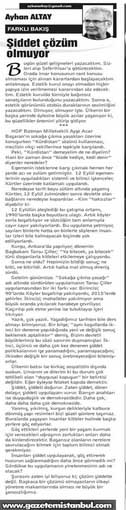 Şurasını zaten iyi biliyoruz ki; çözüm şiddette değil. Başkaca bir çözümü olmayanların ülkeyi yönetme makamlarında olması ne büyük bir şanssızlığımız. |