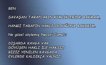 Öncelikle, Pulur'un görüşüne hiç katılmadığımı belirtmeliyim. Başlamadan önce savaşa karşıysam, başladıktan sonra da karşı olurum. Önemli olan, savaşan taraflarının kimlikleri olamaz. Öyle olsa idi; Hitler Almanya'sında faşizme karşı çıkan, bu yüzden ülkelerini terk etmek zorunda kalan -bir bölümü de bizim üniversitelerimize gelen- aydınlar da yanlış yapmış olurdu. Haksız bir savaşa taraf olmaktansa, vatan haini olarak tanımlanmayı (suçlanmayı) yeğlerim. Tarih beni yazmayabilir ama, yine de öncelikle tarih önünde haksız olmak hiç işime gelmez. İkincil olarak, kendime olan saygımı yitirmek istemem. Sonuncu olarak da, bana sorulmadan alınan hiçbir karara katılmama hakkım vardır.